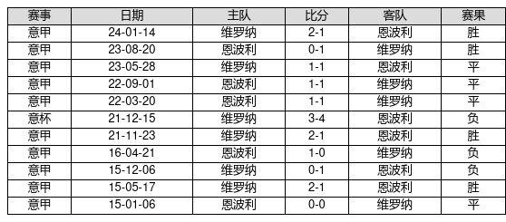 维罗纳 VS 恩波利两队近10年的交战次数为11场,维罗纳4胜4平3负,赢球概率为36.4%,平局概率为36.4%,输球概率为27.3%。