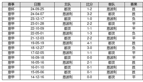 恩波利 VS 都灵两队近10年的交战次数为15场,恩波利6胜6平3负,赢球概率为40.0%,平局概率为40.0%,输球概率为20.0%。
