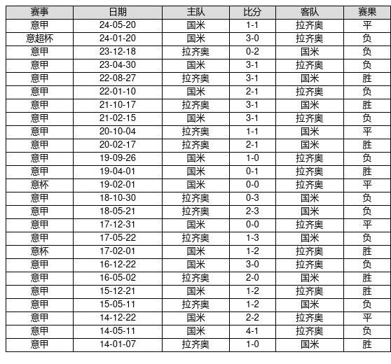 拉齐奥 VS 国米两队近10年的交战次数为25场,拉齐奥8胜5平12负,赢球概率为32.0%,平局概率为20.0%,输球概率为48.0%。
