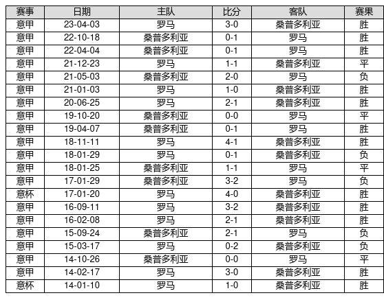 罗马 VS 桑普多利亚两队近10年的交战次数为21场,罗马12胜4平5负,赢球概率为57.1%,平局概率为19.0%,输球概率为23.8%。