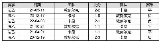 敦刻尔克 VS 卡昂两队近10年的交战次数为6场,敦刻尔克0胜3平3负,赢球概率为0.0%,平局概率为50.0%,输球概率为50.0%。
