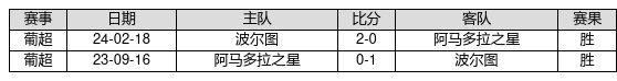 波尔图 VS 阿马多拉之星两队近10年的交战次数为2场,波尔图2胜0平0负,赢球概率为100.0%,平局概率为0.0%,输球概率为0.0%。
