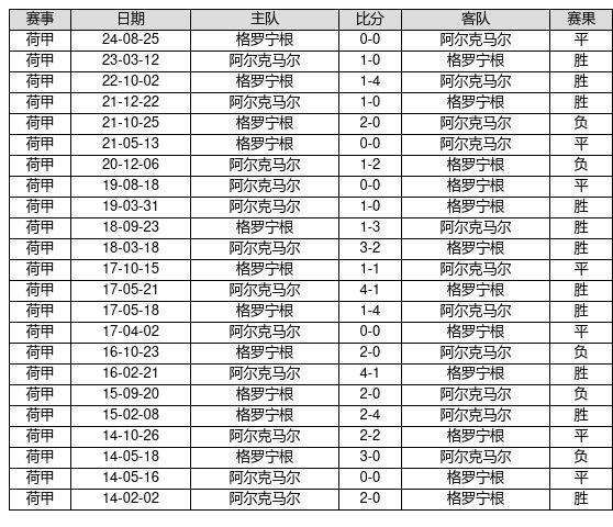 阿尔克马尔 VS 格罗宁根两队近10年的交战次数为23场,阿尔克马尔11胜7平5负,赢球概率为47.8%,平局概率为30.4%,输球概率为21.7%。