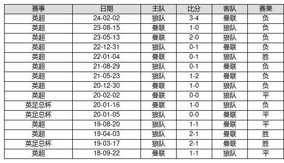 狼队 VS 曼联两队近10年的交战次数为15场,狼队3胜4平8负,赢球概率为20.0%,平局概率为26.7%,输球概率为53.3%。