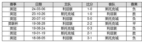 斯托克城 VS 利兹联两队近10年的交战次数为7场,斯托克城2胜1平4负,赢球概率为28.6%,平局概率为14.3%,输球概率为57.1%。