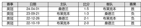 布莱克本 VS 桑德兰两队近10年的交战次数为4场,布莱克本2胜0平2负,赢球概率为50.0%,平局概率为0.0%,输球概率为50.0%。