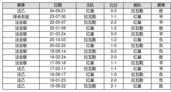 拉瓦勒 VS 红星两队近10年的交战次数为14场,拉瓦勒4胜5平5负,赢球概率为28.6%,平局概率为35.7%,输球概率为35.7%。