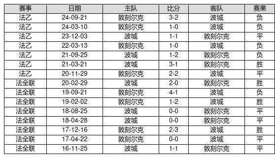 波城 VS 敦刻尔克两队近10年的交战次数为15场,波城4胜6平5负,赢球概率为26.7%,平局概率为40.0%,输球概率为33.3%。