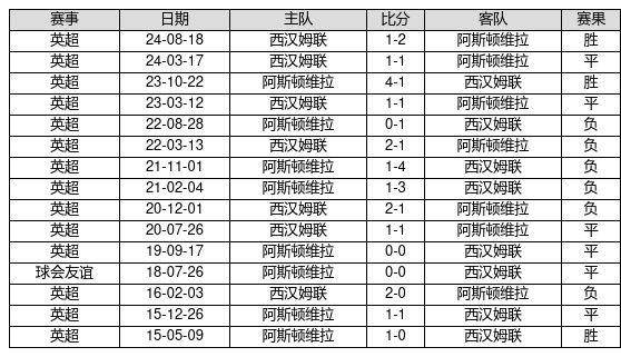 阿斯顿维拉 VS 西汉姆联两队近10年的交战次数为15场,阿斯顿维拉3胜6平6负,赢球概率为20.0%,平局概率为40.0%,输球概率为40.0%。