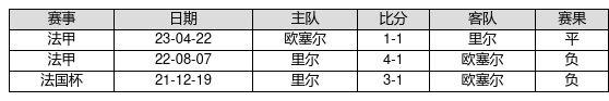 欧塞尔 VS 里尔两队近10年的交战次数为3场,欧塞尔0胜1平2负,赢球概率为0.0%,平局概率为33.3%,输球概率为66.7%。