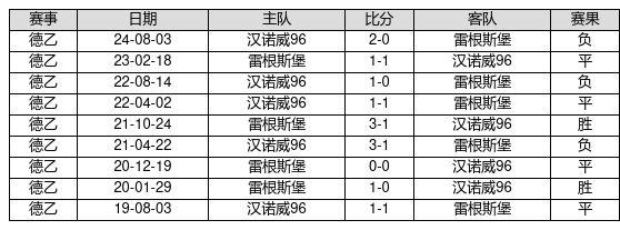 雷根斯堡 VS 汉诺威96两队近10年的交战次数为9场,雷根斯堡2胜4平3负,赢球概率为22.2%,平局概率为44.4%,输球概率为33.3%。