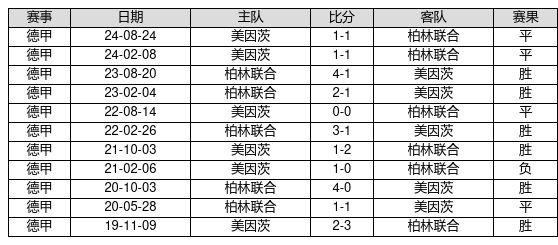 柏林联合 VS 美因茨两队近10年的交战次数为11场,柏林联合6胜4平1负,赢球概率为54.5%,平局概率为36.4%,输球概率为9.1%。