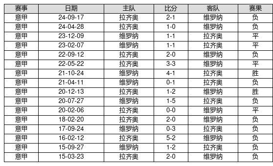 维罗纳 VS 拉齐奥两队近10年的交战次数为16场,维罗纳2胜4平10负,赢球概率为12.5%,平局概率为25.0%,输球概率为62.5%。