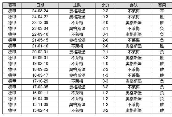 不莱梅 VS 奥格斯堡两队近10年的交战次数为18场,不莱梅9胜1平8负,赢球概率为50.0%,平局概率为5.6%,输球概率为44.4%。