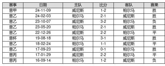 帕尔马 VS 威尼斯两队近10年的交战次数为10场,帕尔马5胜3平2负,赢球概率为50.0%,平局概率为30.0%,输球概率为20.0%。
