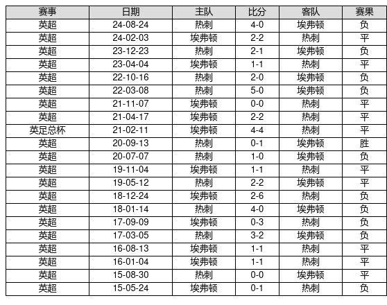 埃弗顿 VS 热刺两队近10年的交战次数为21场,埃弗顿1胜10平10负,赢球概率为4.8%,平局概率为47.6%,输球概率为47.6%。