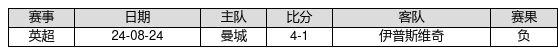 伊普斯维奇 VS 曼城两队近10年的交战次数为1场,伊普斯维奇0胜0平1负,赢球概率为0.0%,平局概率为0.0%,输球概率为100.0%。