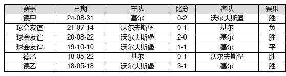 沃尔夫斯堡 VS 基尔两队近10年的交战次数为6场,沃尔夫斯堡4胜1平1负,赢球概率为66.7%,平局概率为16.7%,输球概率为16.7%。