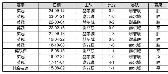 谢菲联 VS 赫尔城两队近10年的交战次数为11场,谢菲联7胜3平1负,赢球概率为63.6%,平局概率为27.3%,输球概率为9.1%。