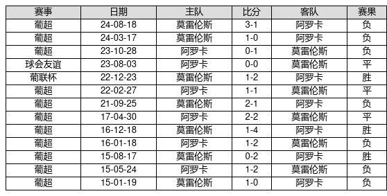 阿罗卡 VS 莫雷伦斯两队近10年的交战次数为13场,阿罗卡3胜3平7负,赢球概率为23.1%,平局概率为23.1%,输球概率为53.8%。