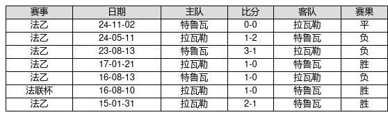 拉瓦勒 VS 特鲁瓦两队近10年的交战次数为7场,拉瓦勒3胜1平3负,赢球概率为42.9%,平局概率为14.3%,输球概率为42.9%。
