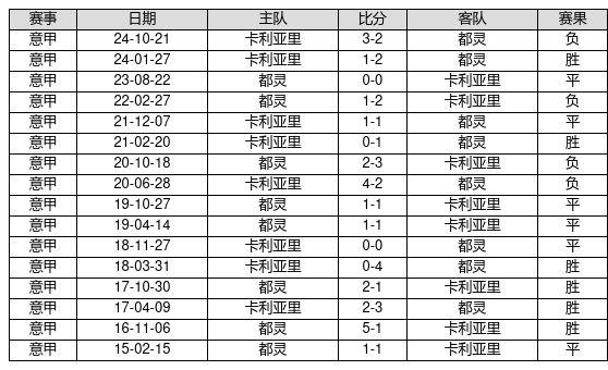 都灵 VS 卡利亚里两队近10年的交战次数为16场,都灵6胜6平4负,赢球概率为37.5%,平局概率为37.5%,输球概率为25.0%。