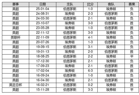 埃弗顿 VS 伯恩茅斯两队近10年的交战次数为18场,埃弗顿7胜2平9负,赢球概率为38.9%,平局概率为11.1%,输球概率为50.0%。
