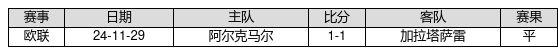 阿尔克马尔 VS 加拉塔萨雷两队近10年的交战次数为1场,阿尔克马尔0胜1平0负,赢球概率为0.0%,平局概率为100.0%,输球概率为0.0%。