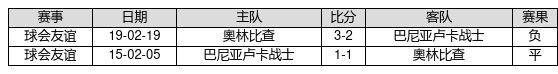 巴尼亚卢卡战士 VS 奧林比查两队近10年的交战次数为2场,巴尼亚卢卡战士0胜1平1负,赢球概率为0.0%,平局概率为50.0%,输球概率为50.0%。