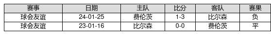 费伦茨 VS 比尔森两队近10年的交战次数为2场,费伦茨0胜1平1负,赢球概率为0.0%,平局概率为50.0%,输球概率为50.0%。