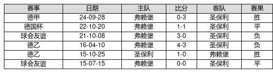 圣保利 VS 弗赖堡两队近10年的交战次数为6场,圣保利2胜2平2负,赢球概率为33.3%,平局概率为33.3%,输球概率为33.3%。