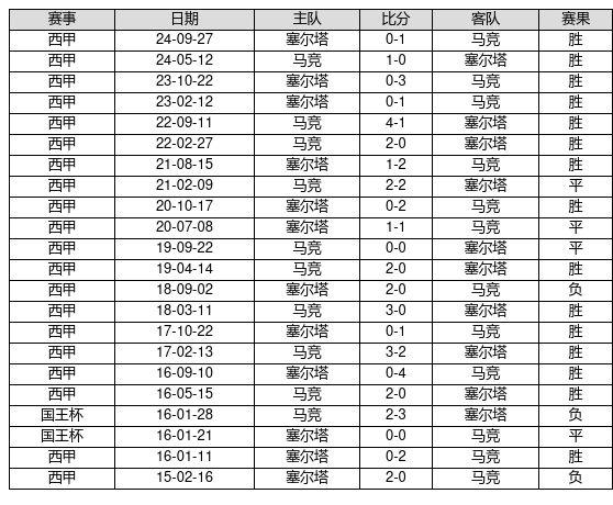 马竞 VS 塞尔塔两队近10年的交战次数为22场,马竞15胜4平3负,赢球概率为68.2%,平局概率为18.2%,输球概率为13.6%。