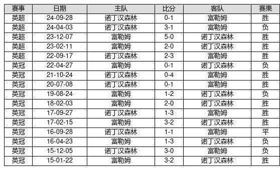 富勒姆 VS 诺丁汉森林两队近10年的交战次数为16场,富勒姆10胜1平5负,赢球概率为62.5%,平局概率为6.2%,输球概率为31.2%。