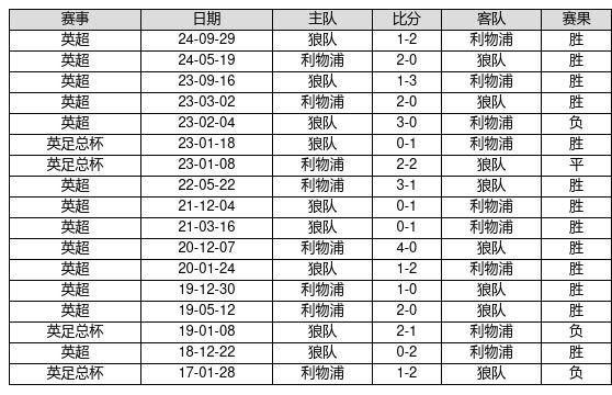 利物浦 VS 狼队两队近10年的交战次数为17场,利物浦13胜1平3负,赢球概率为76.5%,平局概率为5.9%,输球概率为17.6%。