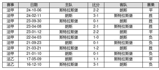 朗斯 VS 斯特拉斯堡两队近10年的交战次数为11场,朗斯4胜3平4负,赢球概率为36.4%,平局概率为27.3%,输球概率为36.4%。
