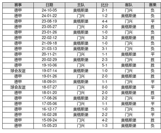 门兴 VS 奥格斯堡两队近10年的交战次数为22场,门兴7胜7平8负,赢球概率为31.8%,平局概率为31.8%,输球概率为36.4%。