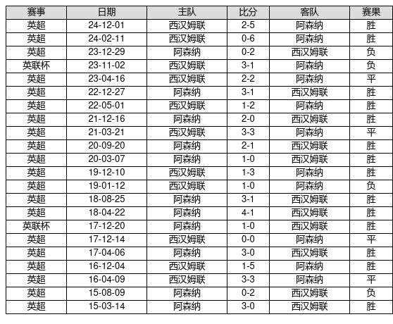 阿森纳 VS 西汉姆联两队近10年的交战次数为22场,阿森纳14胜4平4负,赢球概率为63.6%,平局概率为18.2%,输球概率为18.2%。