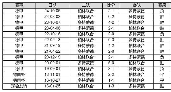 多特蒙德 VS 柏林联合两队近10年的交战次数为14场,多特蒙德8胜2平4负,赢球概率为57.1%,平局概率为14.3%,输球概率为28.6%。