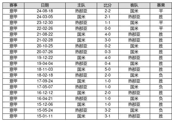 国米 VS 热那亚两队近10年的交战次数为19场,国米12胜3平4负,赢球概率为63.2%,平局概率为15.8%,输球概率为21.1%。
