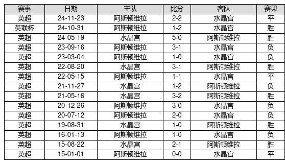 水晶宫 VS 阿斯顿维拉两队近10年的交战次数为15场,水晶宫6胜3平6负,赢球概率为40.0%,平局概率为20.0%,输球概率为40.0%。