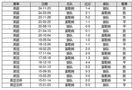 狼队 VS 富勒姆两队近10年的交战次数为18场,狼队10胜6平2负,赢球概率为55.6%,平局概率为33.3%,输球概率为11.1%。