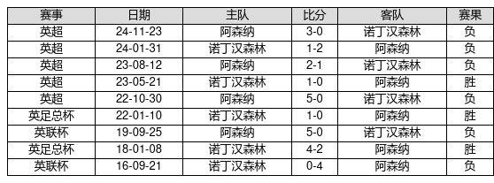 诺丁汉森林 VS 阿森纳两队近10年的交战次数为9场,诺丁汉森林3胜0平6负,赢球概率为33.3%,平局概率为0.0%,输球概率为66.7%。
