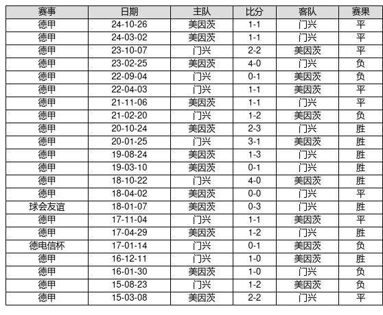 门兴 VS 美因茨两队近10年的交战次数为22场,门兴8胜8平6负,赢球概率为36.4%,平局概率为36.4%,输球概率为27.3%。