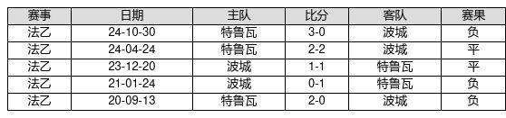 波城 VS 特鲁瓦两队近10年的交战次数为5场,波城0胜2平3负,赢球概率为0.0%,平局概率为40.0%,输球概率为60.0%。