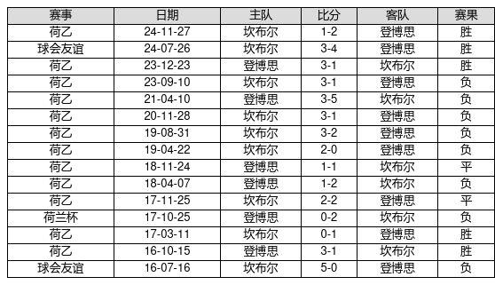 登博思 VS 坎布尔两队近10年的交战次数为15场,登博思5胜2平8负,赢球概率为33.3%,平局概率为13.3%,输球概率为53.3%。