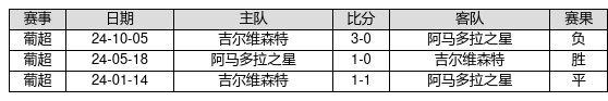 阿马多拉之星 VS 吉尔维森特两队近10年的交战次数为3场,阿马多拉之星1胜1平1负,赢球概率为33.3%,平局概率为33.3%,输球概率为33.3%。