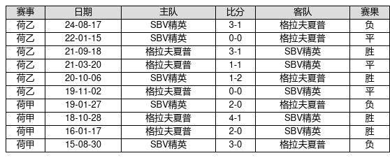 格拉夫夏普 VS SBV精英两队近10年的交战次数为10场,格拉夫夏普4胜3平3负,赢球概率为40.0%,平局概率为30.0%,输球概率为30.0%。