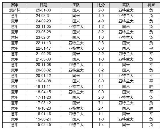 亚特兰大 VS 国米两队近10年的交战次数为22场,亚特兰大2胜7平13负,赢球概率为9.1%,平局概率为31.8%,输球概率为59.1%。