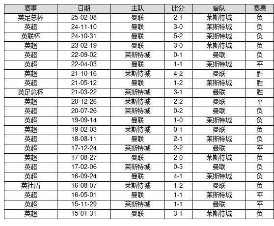 莱斯特城 VS 曼联两队近10年的交战次数为22场,莱斯特城3胜5平14负,赢球概率为13.6%,平局概率为22.7%,输球概率为63.6%。
