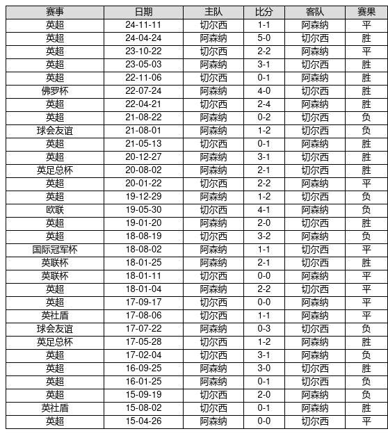 阿森纳 VS 切尔西两队近10年的交战次数为31场,阿森纳13胜9平9负,赢球概率为41.9%,平局概率为29.0%,输球概率为29.0%。